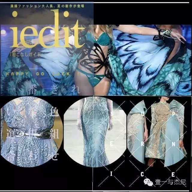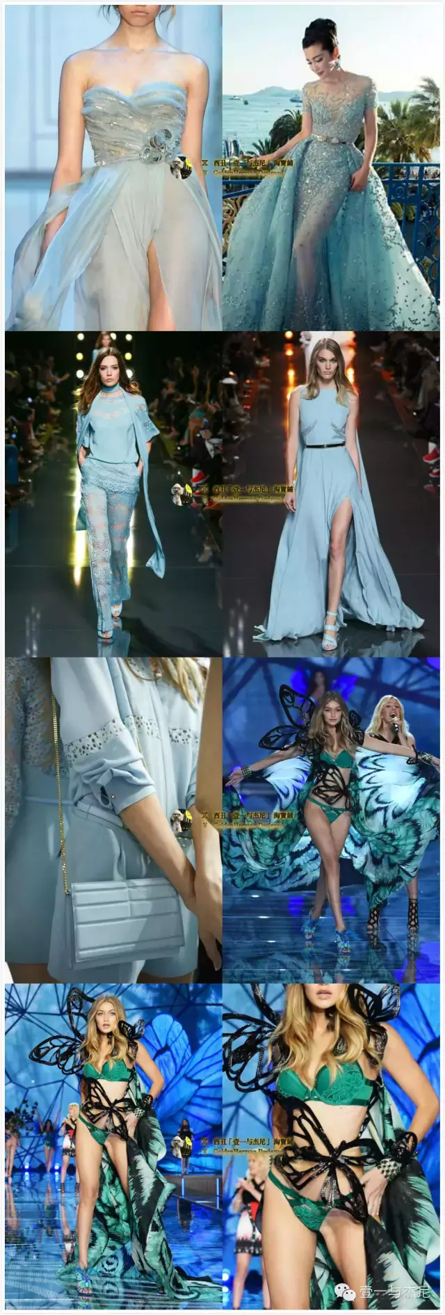 譬如将金裕贞的天仙蓝可以这样搭配内衣和时装,Ella SAAB 2015 SS RTW的海蓝系列是幻想的源泉,“潜入深海”。丝绸、雪纺、蕾丝、亮片各种面料与裙摆都在蓝色下面层叠起伏如海上涟漪,适合比较素净的气质和仙女们。
