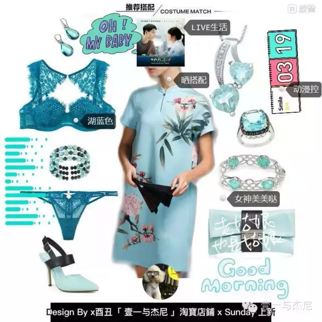 为了她我要赞美上帝,腰细是薄得无趣(的话),胜在有李哈妮的75D啊,搭配丝绸蓝眼褶平式连衣裙,心醉与被迷魂。