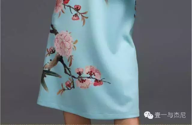 Bra恰好将胸线及锁骨裸露,外罩粉蓝的改良旗袍连衣裙,面色和面料上鲜艳的桃红绿竹,灼若芙蕖。