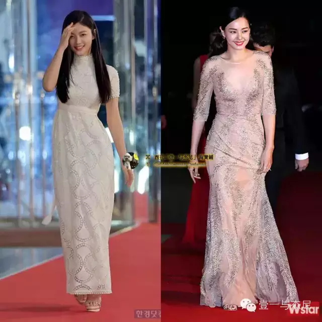 譬如金裕贞在2014参加SBS Drama Awards,这个本应是李哈妮出现的颁奖,她穿着摆啊摆啊的高腰,和李哈妮在2015首尔歌谣大赏抢眼Julien Macdonald裸色长裙是一种近似的颜色,两种悸动的迷魂。