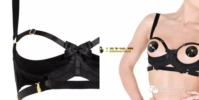 罩杯部分仅仅用双层网纱制成的1/4罩杯提供最基本的支撑,蓄意要让整个胸型全部裸露出来。设计师太坏了。