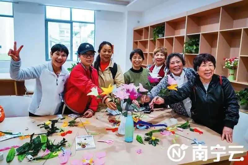 南宁市第二社会福利院(南宁市五象养老服务中心)内设施齐全。图为入住老人在上手工艺课。 记者叶子榕摄