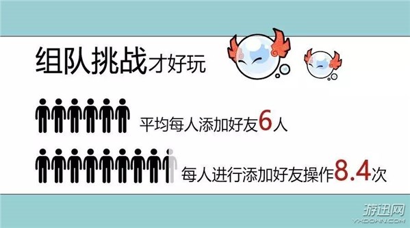 组队合作才是水Q的精髓,封测中平均每人添加好友6人,平均每人进行添加好友操作8.4次。