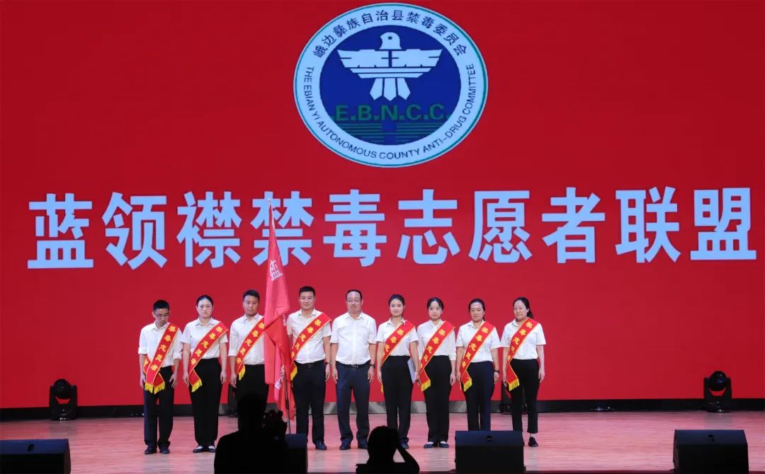 自治县政协主席、县禁毒委员会第一副主任余平出席活动并向“蓝领襟禁毒志愿者联盟”授旗。县委副书记、县禁毒委副主任潘福金,市禁毒办副主任、市公安局禁毒缉毒支队政委张力文等出席主题活动。